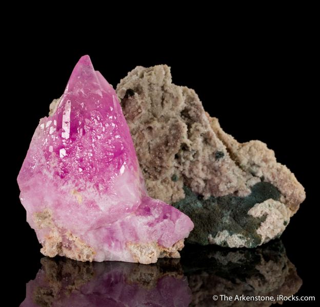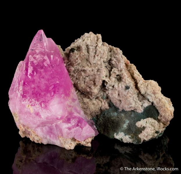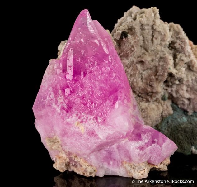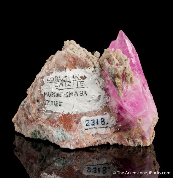 This is a Calcite var. Cobaltian with Kolwezite from Mupine Mine, Kolwezi, Katanga, Democratic Republic of Congo. Cobaltian calcite at its best has the most stunning color in the mineral world, to my taste (and Jack shares it, as he pursued these aggressively and they were over-represented in his collection!) This specimen was among Jack's top 3 of 9 of these gorgeous cobaltian calcites he had at the peak size of the collection, and I begged him for just one for myself back in the early 2000s as I was strongly collecting calcites.Data last checked on 26th Aug 2024 - specimen may no longer be available