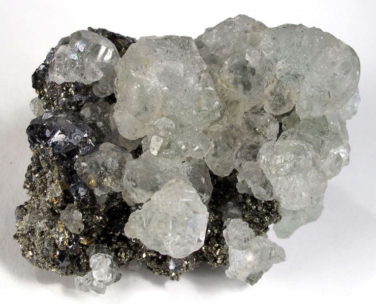 Fluorite on Pyrite and Galena (Ref: HECK-011)