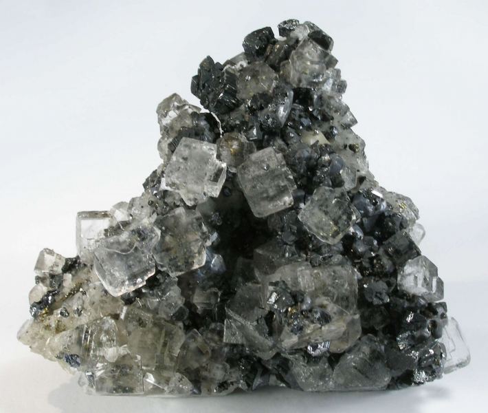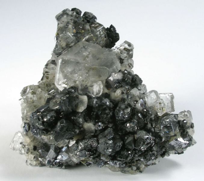Galena (twinned) on Quartz with Fluorite & Calcite