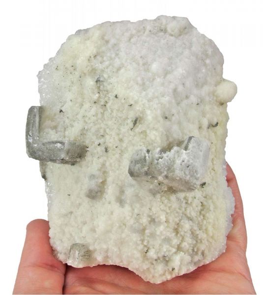 This is a Quartz Encrusting Danburite With Calcite from Charcas, San Luis Potosi, Mexico. Two, very large crystals in parallel growth of danburite, to 10 cm in length, have been thickly encrusted by sparkling drusy quartz.Data last checked on 26th Aug 2024 - specimen may no longer be available