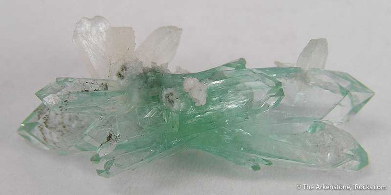 This is a Fluorapophyllite and Stilbite (Floater) from Jalgaon, Maharashtra, India. This is an exquisite, "bow tie," doubly terminated, crystal cluster, of lustrous, transparent, light, mint green, fluorapophyllite.Data last checked on 26th Aug 2024 - specimen may no longer be available