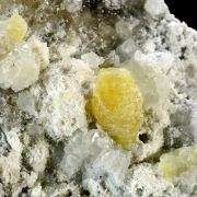 This is a Weloganite (fluorescent) and Strontianite (fluorescent) from Francon quarry, Montreal, Quebec, Canada (Type Locality). Weloganite is extremely rare, with good specimens of this strontium, sodium, zirconium carbonate far and few between.Data last checked on 26th Aug 2024 - specimen may no longer be available