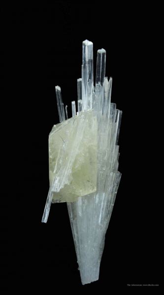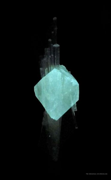 This is a Powellite (Fluorescent) and Apophyllite on Scolecite from near Nasik, Maharashtra, India. A unique find and combination from April, 1998, still not equaled to date: This is from "that pocket" which you see only in a few photos today.Data last checked on 26th Aug 2024 - specimen may no longer be available