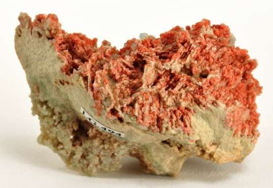 This is a Hilgardite on Boracite from Boulby Potash Mine, Loftus, North Yorkshire, England. Emplaced on a vuggy matrix of massive boracite is a druse of lustrous, salmon colored crystals of hilgardite.Data last checked on 29th Jul 2024 - specimen may no longer be available