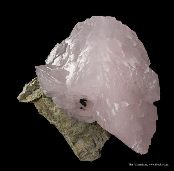This is a Calcite Var. Manganoan from Second Soviet Mine, Dalnegorsk, Primorskiy Kraj, Siberia, Russia. Emplaced on matrix is a cluster of intergrown, lustrous and translucent, light pink rhombs of manganocalcite to 6 cm across.Data last checked on 29th Jul 2024 - specimen may no longer be available
