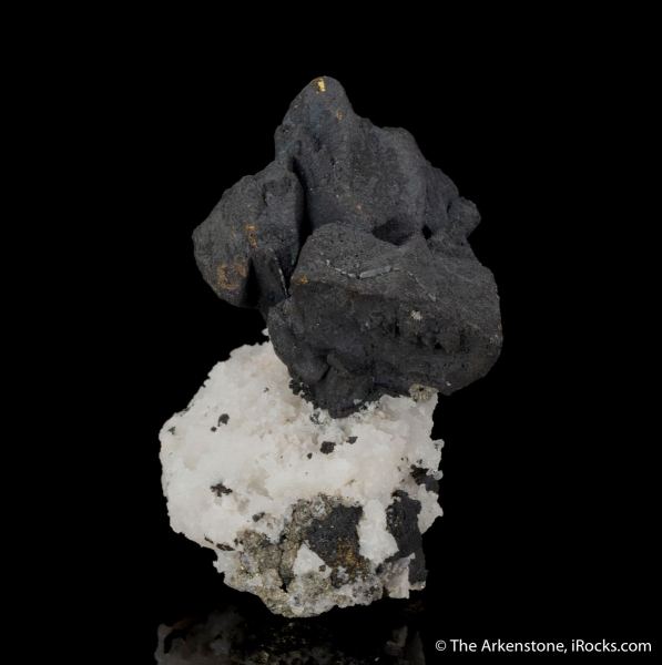 This is a Chalcocite on Chalcopyrite from Cobre Mine, Concepcion de Oro, Zacatecas, Mexico. Chalcocite (Cu2S) coats a large, dynamic cluster of Chalcopyrite (CuFeS2) perched on a mass of hackly Quartz.Data last checked on 29th Jul 2024 - specimen may no longer be available