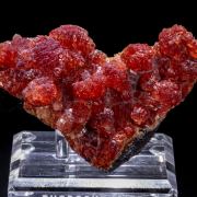 This is a Rhodochrosite from Hotazel Mine, Northern Cape Province, South Africa. A large cabinet piece from the old classic finds of the late 1970s (before the N'Chwaning Mine material!), this rhodochrosite features not one but two styles of crystallization on the same specimen: Individual, classically-formed scalenohedra of rhodochrosite, to 1.5 cm in length, combined with clusters of truncated scalenohedra to 1.6 cm across, to form a beautiful specimen emplaced on massive, contrasting black manganese ore.Data last checked on 29th Jul 2024 - specimen may no longer be available
