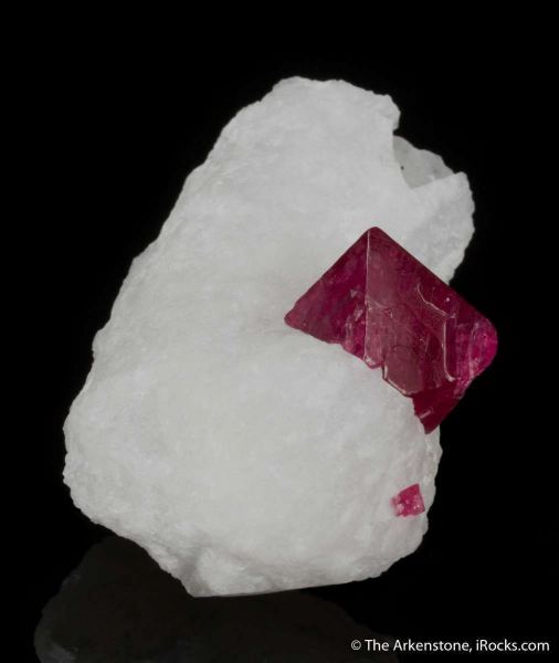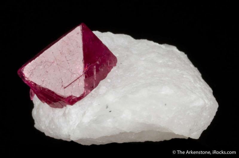 This is a Spinel on Marble from Mogok, Mandalay Division, Myanmar. Exquisitely perched high on a matrix of snow white marble is a beautifully crystallized spinel octahedron, measuring 1.8 cm in length.Data last checked on 29th Jul 2024 - specimen may no longer be available