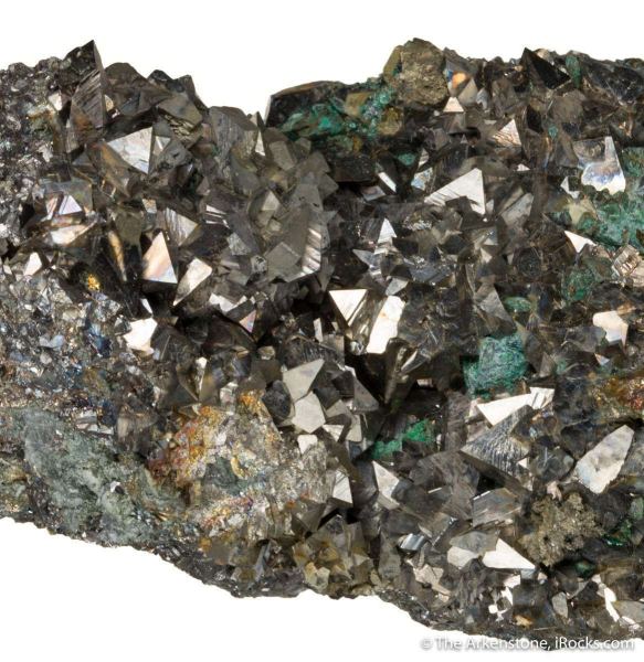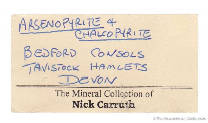 This is a Arsenopyrite and Chalcopyrite from Bedford Consols, Tavistock Hamlets, Devon, England, UK. Emplaced in a vug in massive arsenopyrite are sharply crystallized, highly lustrous, metallic, silvery gray, crystals of arsenopyrite to 7 mm in length.Data last checked on 29th Jul 2024 - specimen may no longer be available