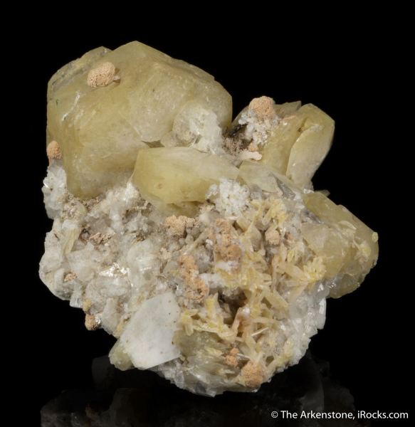 This is a Catapleite from Poudrette Quarry, Mont Saint-Hilaire, Quebec, Canada. This is very unusual material due to its very atypical habit for the species that comprises thick, tabular, creamy yellow crystals that are very three-dimensional compared to the typical thin, platy, pseudo-hexagonal, windowpane crystals.Data last checked on 29th Jul 2024 - specimen may no longer be available