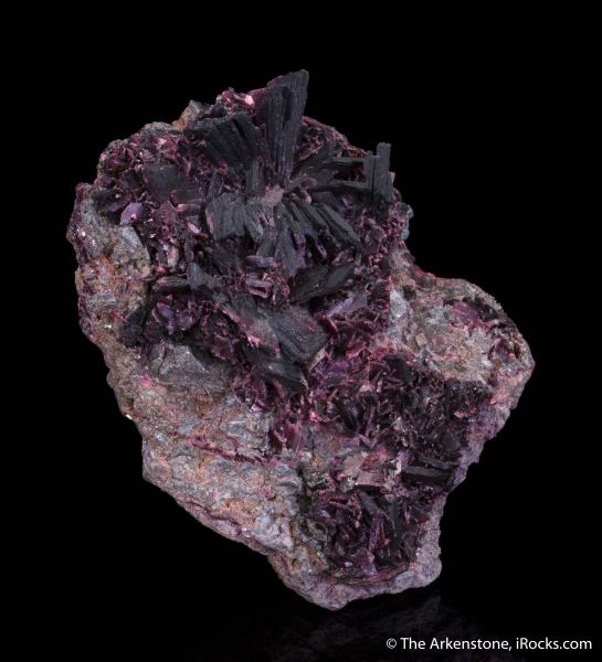 This is a Erythrite from Bou Azer, Tazenakht, Ouarzazate Province, Souss-Massa-Draa Region, Morocco. Nicely emplaced on massive, cobalt-rich ore, are discrete, tabular erythrite crystals forming a really unusual rosette measuring 3.5 cm across.Data last checked on 29th Jul 2024 - specimen may no longer be available