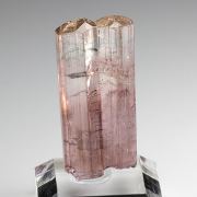 This is a Lepidolite pseudomorphing after Elbaite from Naipa Mine, Alto Ligonha District, Zambezia Province, Mozambique. This fine pseudomorph exhibits a lovely sparkly-pink iridescence or flash to the lepidolite surface.Data last checked on 29th Jul 2024 - specimen may no longer be available