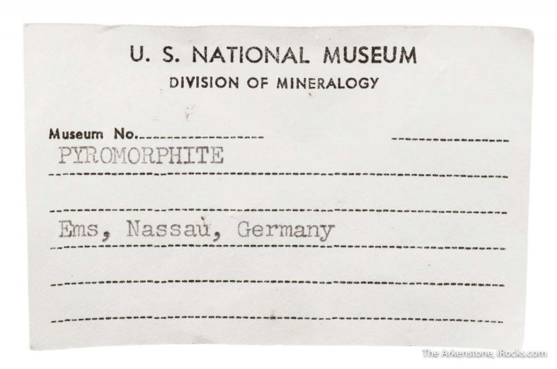 Pyromorphite (circa 1830's) (Ref: MUN16B-47)