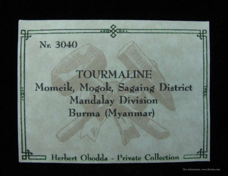 This is a Tourmaline on Schorl from Momeik Township, Kyaukme, Myanmar (Burma). This is a very good example of the so-called "mushroom" tourmalines from late 1990s finds in Momeik.Data last checked on 29th Jul 2024 - specimen may no longer be available