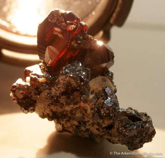 This is a Pyrargyrite from St. Andreasberg, Harz Mountains, Lower Saxony, Germany. A brilliantly metallic, lustrous, gemmy crystal of 1 cm surmounts this matrix cluster.Data last checked on 29th Jul 2024 - specimen may no longer be available