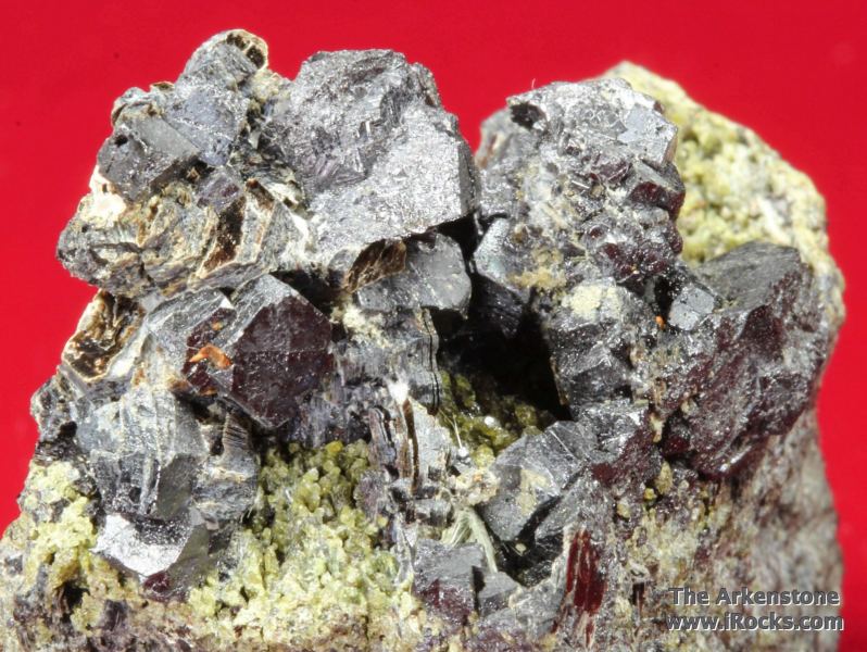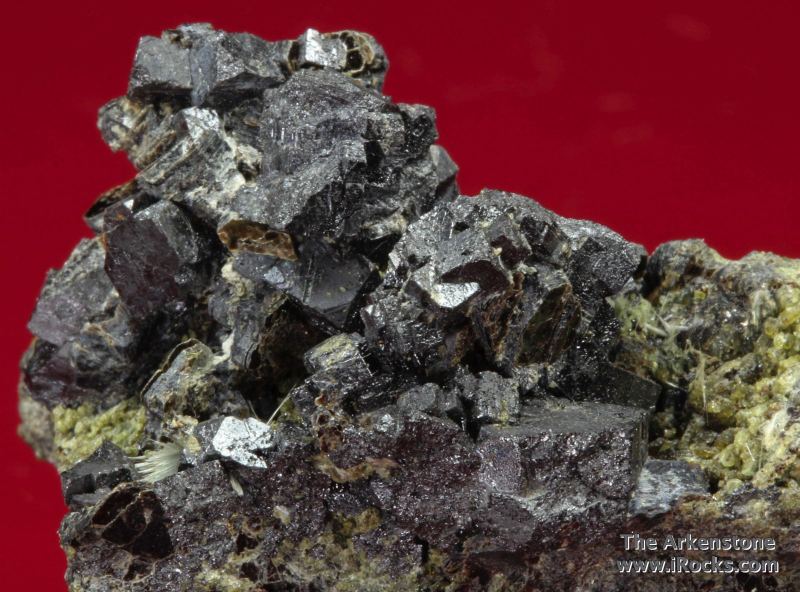 This is a Perovskite with Phlogopite, Richterite, Augite on jacupirangite from Mineracao Serrana, Jacupiranga, Sao Paulo, Brazil. Clusters of steel gray cubes and cuboctahedra of perovskite to 6mm are intergrown with euhedral books of bronze phlogopite that stand up well off the matrix that is carpeted with small, peridot-green augite crystals.Data last checked on 29th Jul 2024 - specimen may no longer be available