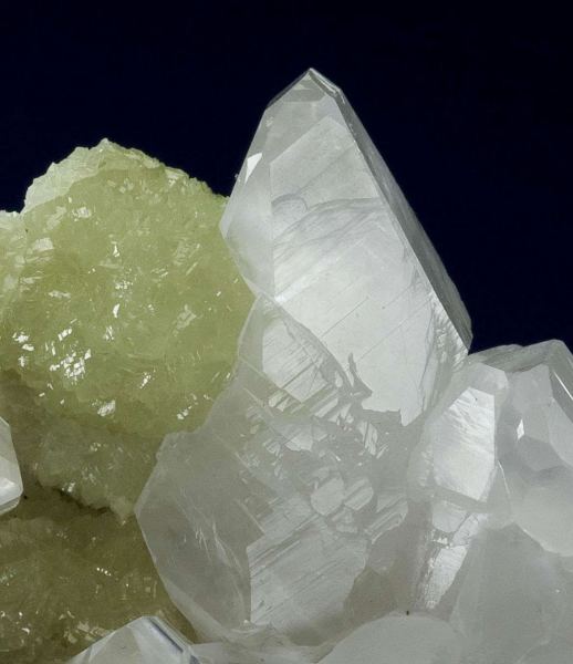 This is a Calcite on Prehnite Cast After Anhydrite from Prospect Park Quarry, Prospect Park, Passaic Co., New Jersey, USA. A beautiful combo piece, among the few in the pocket with such exposed calcites not subjected to weathering and/or damage.Data last checked on 29th Jul 2024 - specimen may no longer be available