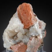 This is a Monteregianite-(Y) (type locality) with Pectolite on Albite from Monteregian intrusive, Poudrette quarry, Mont Saint-Hilaire, La Vallee-du-Richelieu RCM, Monteregie, Quebec, Canada. A rare specimen from the type and only locality!Data last checked on 29th Jul 2024 - specimen may no longer be available