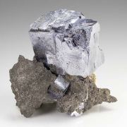 Galena (twinned) on Quartz with Fluorite & Calcite