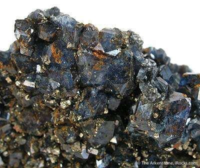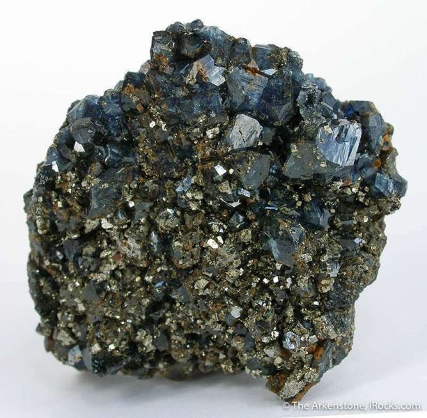 This is a Scorodite from Hezhou, Guangxi Zhuang Autonomous Region, China. Lustrous, deep blue scorodite crowning a plate of pyrite-coated massive scorodite (with minute crystals on the back as well), with a doubly-terminated crystal reaching 1 cm in size.Data last checked on 29th Jul 2024 - specimen may no longer be available