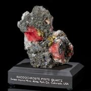 Rhodochrosite, Pyrite & Quartz on Tetrahedrite