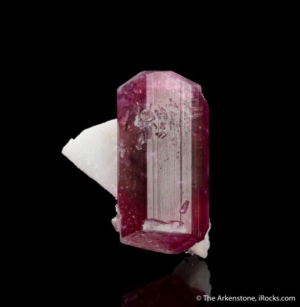 This is a Liddicoatite, Albite from Ampatsikahitra Mine, Sahatany, Madagascar. A very appealing, doubly terminated, 3.6 cm long, cranberry-pink Liddicoatite-Elbaite Tourmaline crystal from Madagascar juxtaposed to a snow white Albite crystal to provide a beautiful accent!Data last checked on 29th Jul 2024 - specimen may no longer be available