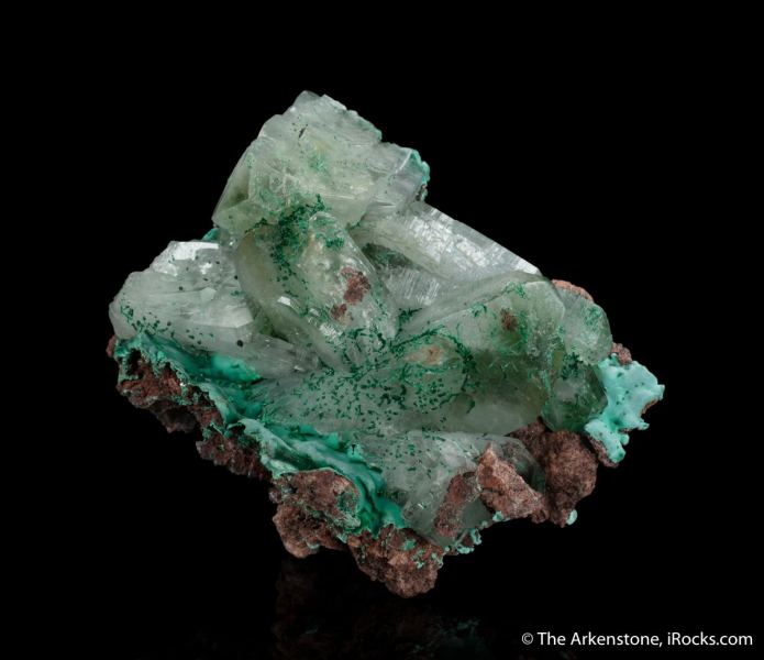 This is a Baryte with Malachite inclusions from Shangulowe Mine, Kambove District, Lualaba, Democratic Republic of the Congo. Very nice small cabinet combination piece from the Shangulowe Mine in the DRC that features several large, well-formed Baryte crystals in association with Malachite and some Chrysocolla.Data last checked on 29th Jul 2024 - specimen may no longer be available