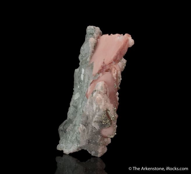 This is a Rhodochrosite on Quartz from Wutong Mine, Liubao, Cangwu Co., Wuzhou, Guangxi, China. This very elegant and very unusual Chinese Rhodochrosite specimen consists of several large, flat, greenish-tinted Quartz crystals along with platy, drusy, pink Rhodochrosite.Data last checked on 29th Jul 2024 - specimen may no longer be available