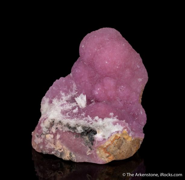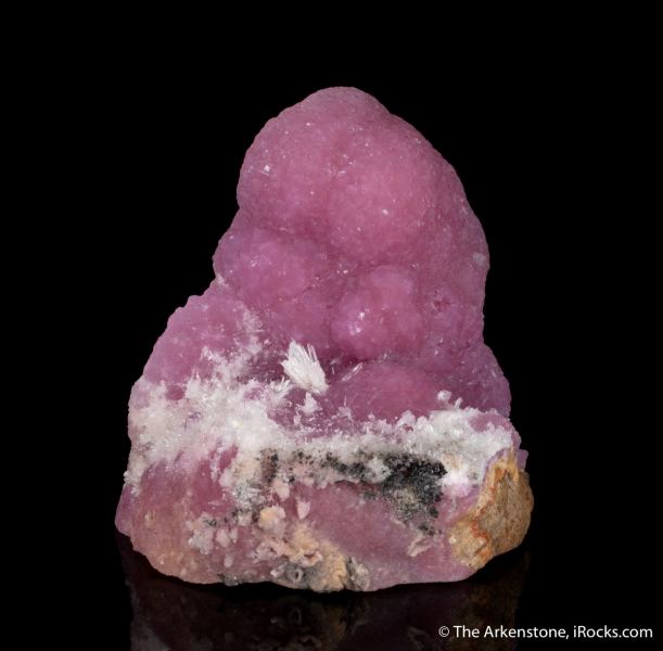 This is a Aragonite on Aragonite var. Cobaltoan from near Wenshan City, Wenshan County, Yunnan, China. Bright pink botryoids of Cobaltoan Aragonite are graced with stark white, divergent fascicles of a later generation of Aragonite without cobalt.Data last checked on 29th Jul 2024 - specimen may no longer be available