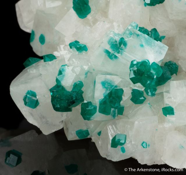Dioptase on and included within Calcite (Ref: SM21-007)