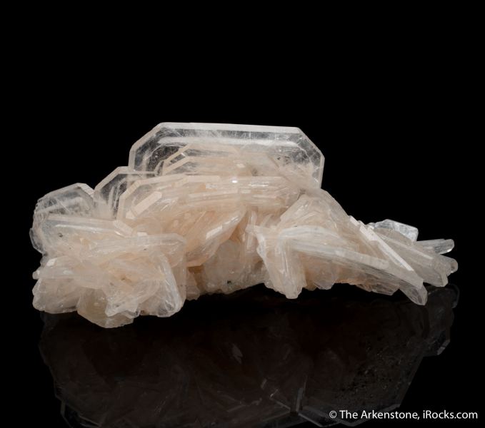 This is a Fluorapophyllite from Fengjiashan Mine (Daye copper mine), Daye Co., Huangshi, Hubei, China. This is a textbook cluster of bladed, tabular Fluorapophyllite crystals from the Fengjiashan Mine mine in China that have a pinkish hue to them.Data last checked on 29th Jul 2024 - specimen may no longer be available