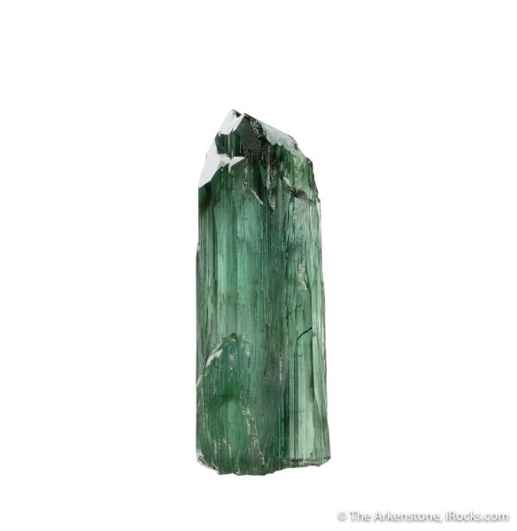 This is a Elbaite Tourmaline from Golconda Mine, Governador Valadares, Minas Gerais, Brazil. An excellent, gem green Elbaite Tourmaline crystal from the famed Golconda Mine in Brazil!Data last checked on 29th Jul 2024 - specimen may no longer be available