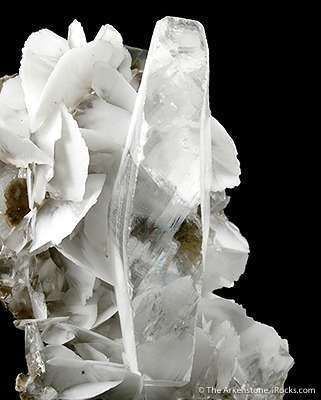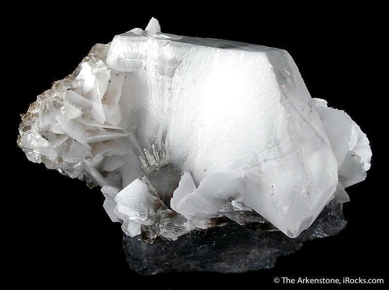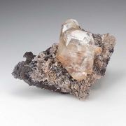 This is a Calcite from Near Daye, Hubei Province, China. This is another superb calcite specimen, that features a large calcite crystal, 7 cm across, with two, white basal terminations that sandwich a prismatic termination that is glassy, gemmy, and colorless so that you can look deep into the crystal through it.Data last checked on 29th Jul 2024 - specimen may no longer be available