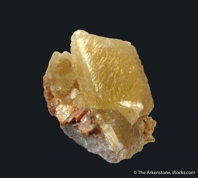 This is a Smithsonite on Willemite from Berg Aukas Mine, Grootfontein District, Otjozondjupa Region, Namibia (Not Tsumeb!). A choice single elongated rhomb of straw-yellow Smithsonite, on matrix.Data last checked on 29th Jul 2024 - specimen may no longer be available