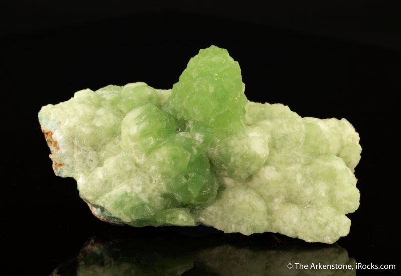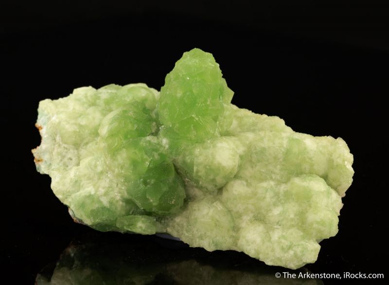 This is a Smithsonite var. Cuprian Smithsonite from Tsumeb Mine, Tsumeb, Oshikoto Region, Namibia. A highly unusual, flowing carpet of dense coverage of creamy green to bright pistachio-green mounded aggregates of Smithsonite on an elongated small cabinet piece from this noted locale.Data last checked on 29th Jul 2024 - specimen may no longer be available