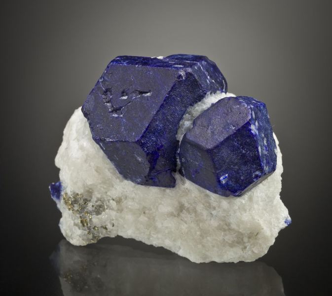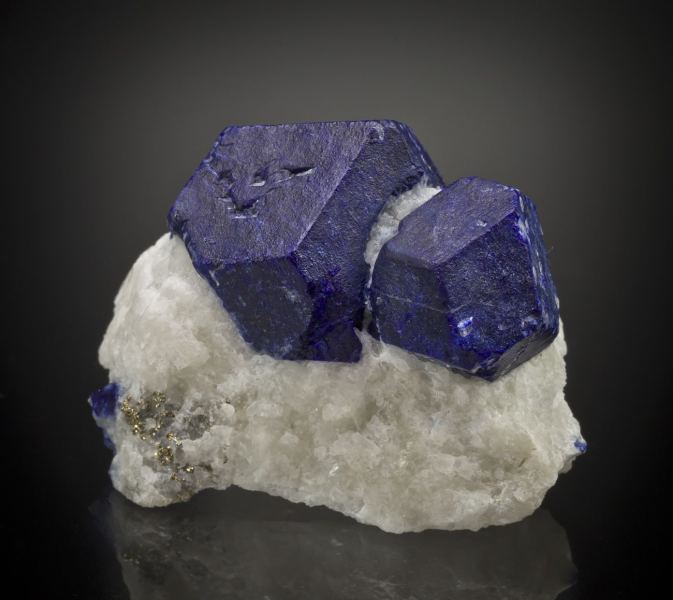 This is a Lazurite (Lapis Lazuli) from Koksha Valley, Badakhshan Province, Afghanistan. A sharp specimen with several SUPERB crystals to 3.5 cm with really top color and luster for this normally rock-forming material, from the classic ancient locality for Lapis Lazuli.Data last checked on 29th Jul 2024 - specimen may no longer be available