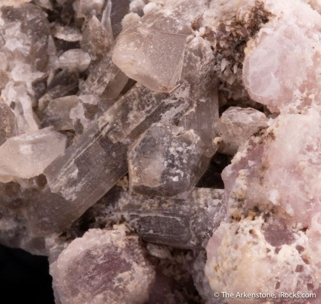 Spodumene /(var: “Kunzite”)/ with Tourmaline and Microlite on Microcline