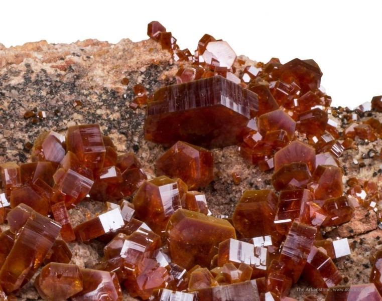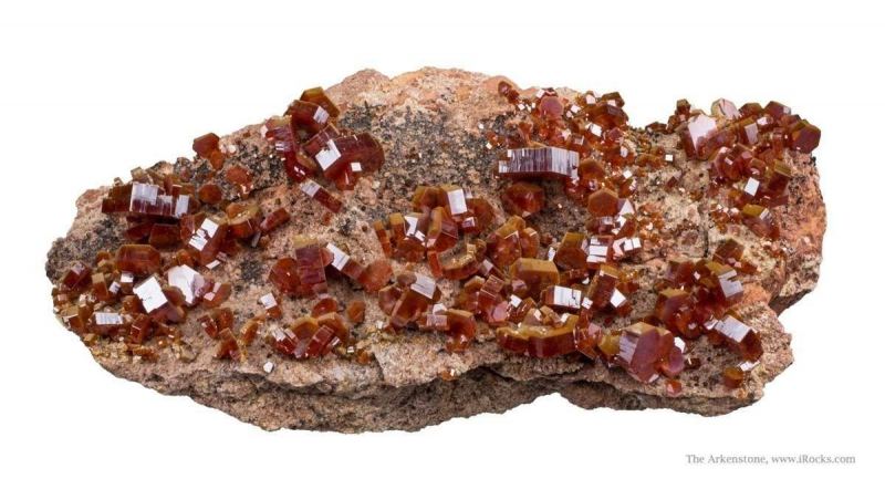 This is a Vanadinite from ACF Mine (incl. Coud'a shaft; Coudia shaft), Mibladene (Mibladen; Mibladan; Miblanden), Upper Moulouya lead district, Midelt, Khenifra Province, Meknes-Tafilalet Region, Morocco. From the 2009 find, noted for its thick, robust crystals; a large specimen with crystals to 2.0 cm in size.Data last checked on 29th Jul 2024 - specimen may no longer be available
