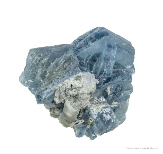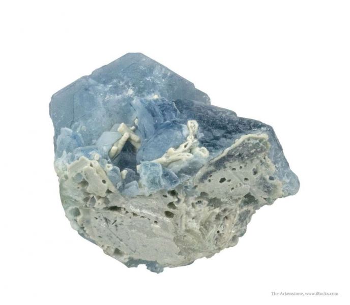 This is a Blue Alkali Beryl from Deo Darrah, Khash & Kuran Wa Munjan Districts, Badakhshan Province, Afghanistan. A jackstraw cluster of tabular, lustrous and translucent sky blue beryl in crystals to 1.8 cm, is perched on massive albite.Data last checked on 29th Jul 2024 - specimen may no longer be available