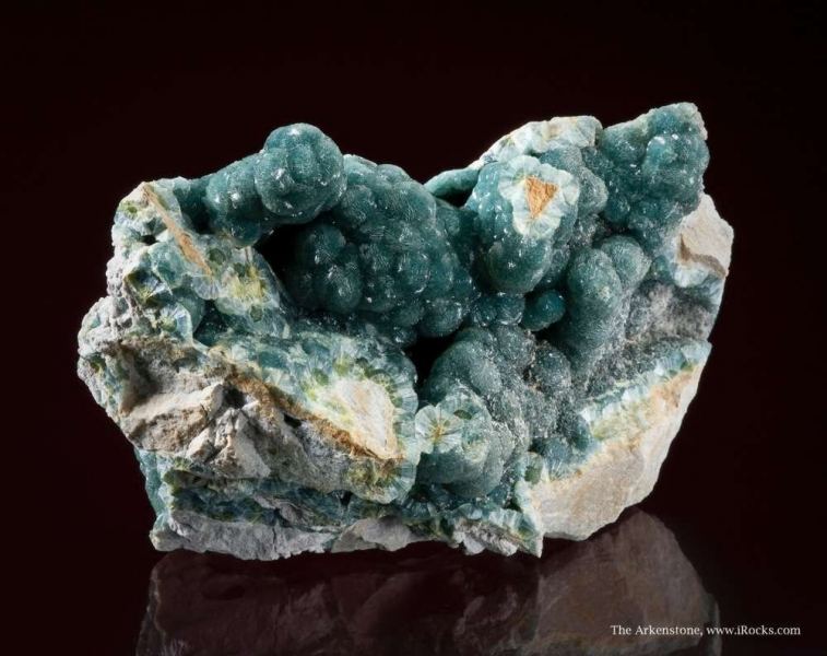 This is a Wavellite from Avant Mine, Garland County, Arkansas, USA. This specimen in severely brecciated, light gray novaculite has sparkling and translucent, rich teal blue wavellite spheres, to 1 cm across.Data last checked on 29th Jul 2024 - specimen may no longer be available