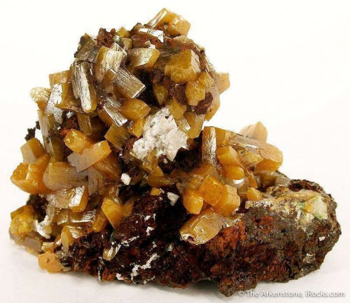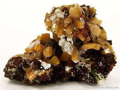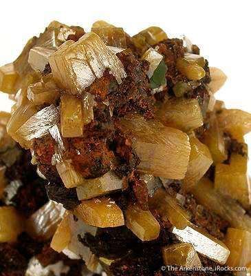 This is a Wulfenite from San Juan Poniente Shaft, Ojuela Mine, Mapimi Durango Mexico. Pseudo-cubic, elongated, lustrous and translucent, butterscotch-colored crystals of wulfenite, to 1.25 cm in length, are perched on and around a knob of ocherous, gossan limonite.Data last checked on 29th Jul 2024 - specimen may no longer be available