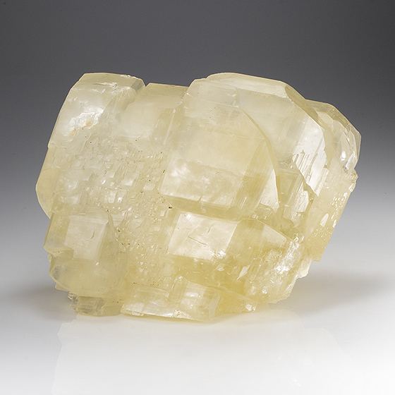 Superb old time piece consisting of a grouping of colorless to slightly yellowish interconnected rhombohedral calcite crystals without matrix. Very minimal chipping is present, this still in very good condition considering the age of the piece in size of the crystals. This will sit perfectly by itself or display.Data last checked on 11th Aug 2021 - specimen may no longer be available