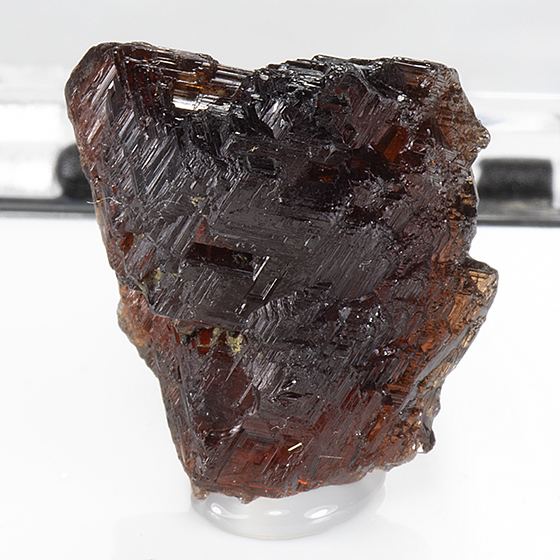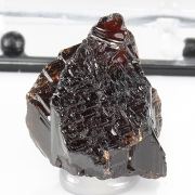 A very fine naturally etched deep red translucent spessartine crystal. In great condition with no points of attachment and complete all around. Mounted for display in a perky box and will ship as shown.Data last checked on 11th Aug 2021 - specimen may no longer be available