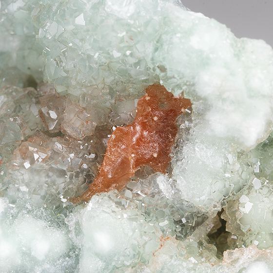 Dark orange crystallized hilgardite a month sparkling bluish green crystallized boracite.Data last checked on 11th Aug 2021 - specimen may no longer be available