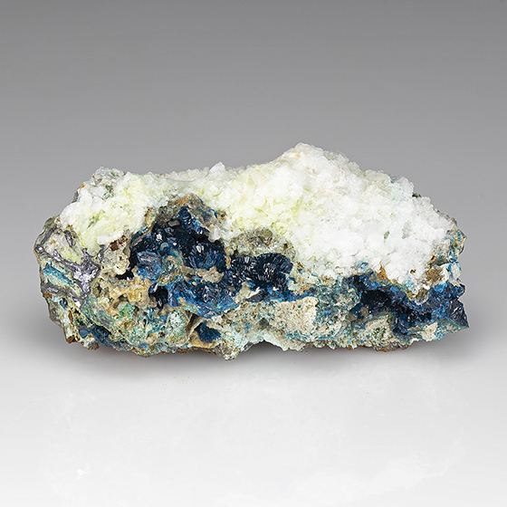 From recent finds in China, beautiful deep blue micro crystals rich throughout this matrix with hemimorphite. In very good condition with minimal micro-chipping present, this is quite good for the species.Data last checked on 11th Aug 2021 - specimen may no longer be available