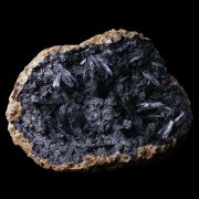 Deep bluish green lustrous slightly translucent crystals of vivianite to 2.0 cm in length on a fossilized clamshell matrix. In very good condition.Data last checked on 11th Aug 2021 - specimen may no longer be available