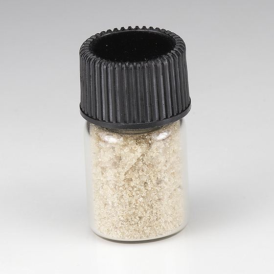 A sealed plastic vial holding loose small grains of boussingaultite.Data last checked on 11th Aug 2021 - specimen may no longer be available