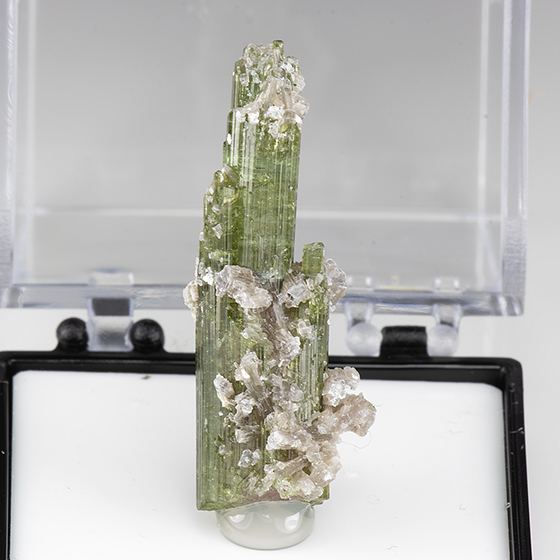 Attractive cluster of green and pink elbaite crystals with lepidolite. Known as watermelon tourmaline. Mounted for display in a perky box and will ship as shown.Data last checked on 11th Aug 2021 - specimen may no longer be available