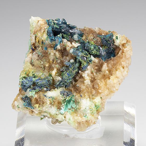 Blue lustrous crystallized veszelyite across the front of this matrix. Richly crystallized in very good for the species.Data last checked on 11th Aug 2021 - specimen may no longer be available