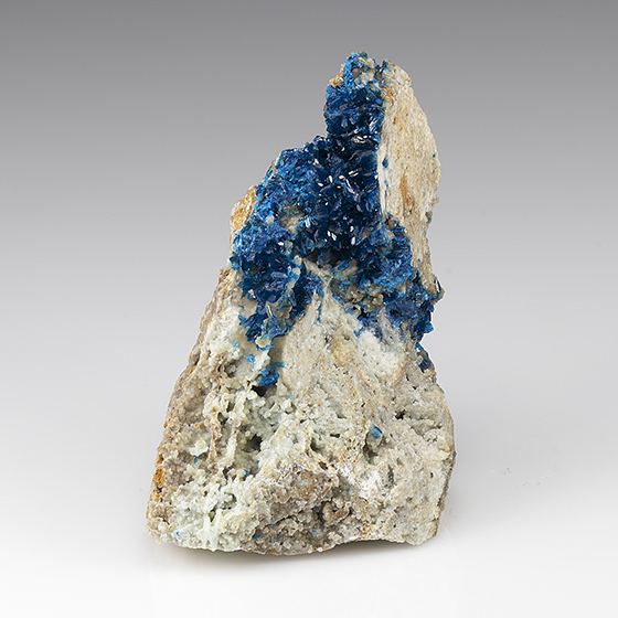 Glassy deep blue slightly translucent and lustrous crystals to 0.4 cm in size throughout this matrix. Very minimal and sparse micro-chipping present, this in very good condition. Quite choice for this rare species from recent finds in China, early 2021.Data last checked on 11th Aug 2021 - specimen may no longer be available